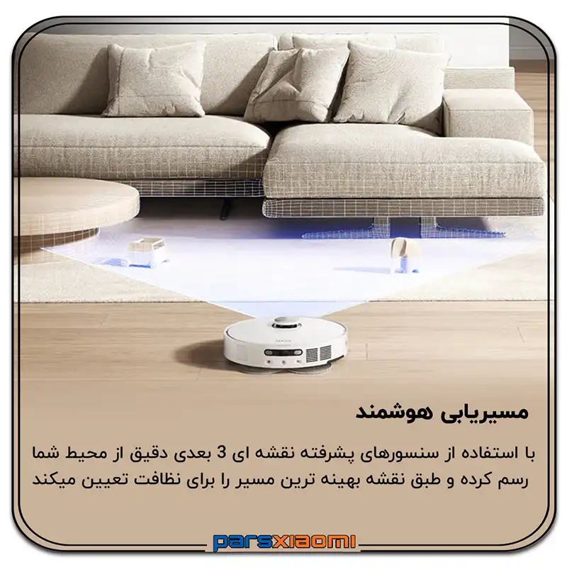- شستشوی مجدد هوشمند: در صورت تشخیص آلودگی زیاد در یک منطقه، جارو به طور خودکار آن ناحیه را مجدداً تمیز میکند.