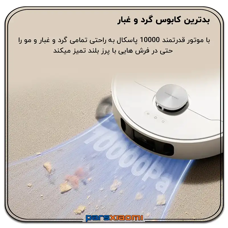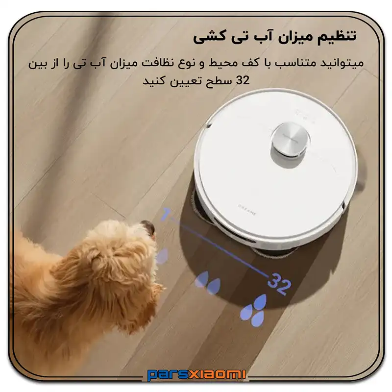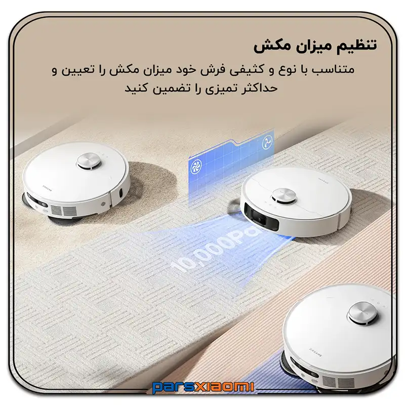 - حالتهای تمیز کردن متنوع: شامل حالتهای جارو، طی کشیدن، جارو و طی کشیدن همزمان، و حالت سفارشی.