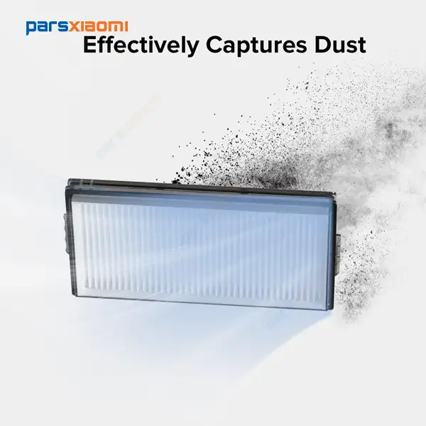 - عملکرد: این فیلتر به گونهای طراحی شده است که ذرات ریز گرد و غبار، گرده گیاهان، و آلرژنها را از هوای خارج شده از ربات جذب کرده و محیط خانه را بهداشتیتر نگه دارد.