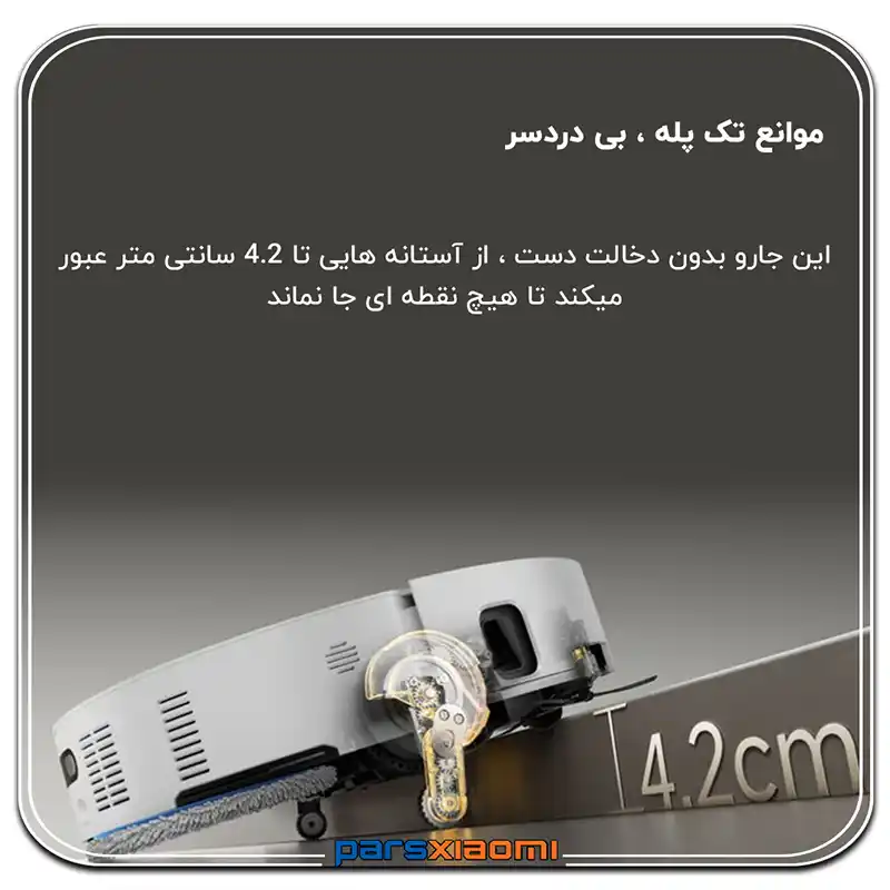 پاهای تلسکوپی و موتور نوسانی: در حالی که اکثر رباتها پشت لبههای ۲ سانتیمتری گیر میکنند، Matrix10 Ultra با استفاده از بازوهای مکانیکی میتواند از موانع و پلههایی تا ارتفاع ۸ سانتیمتر () بالا برود.