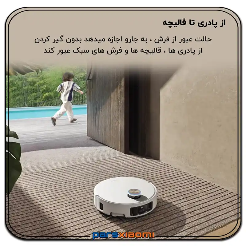 فتح ریلها: ریلهای ضخیم دربهای بالکن و اختلاف سطحهای شدید بین اتاقها، دیگر مانعی برای حرکت روان این ربات نیستند.
