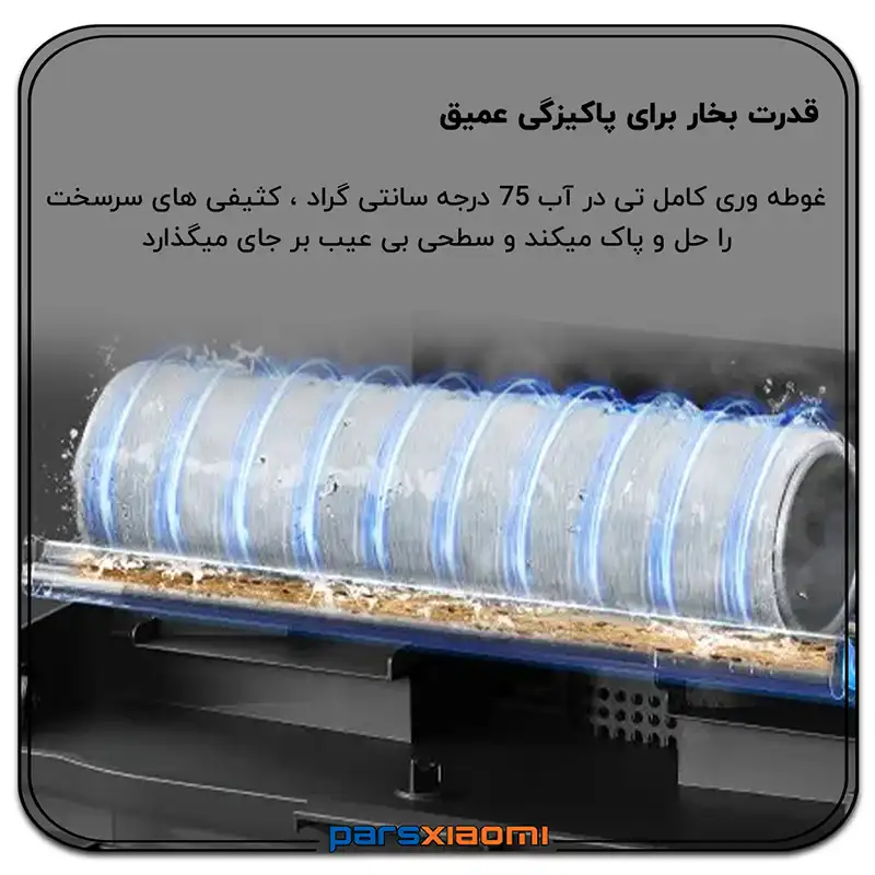 - Hot Water Soak Washing: راز آب 75 درجه سانتیگراد: این قابلیت نوآورانه، غلتک تیکشی را کاملاً در آب داغ 75 درجه سانتیگراد خیس میکند تا کثیفیهای چرب و سرسخت کاملاً حل شوند. این یک شستشوی عمیق و ضدعفونی کننده است.