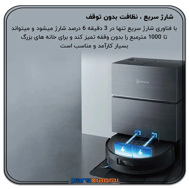 - PowerBoost Flash-Charge: نظافت بیوقفه 1000 متر مربع: این فناوری شارژ فوقالعاده سریع، در طول مکثهای شستشوی تی، 6% باتری را در 3 دقیقه بازیابی میکند. نتیجه؟ عملکرد مداوم و نامحدود برای نظافت خانههای بزرگ تا 1000 متر مربع.