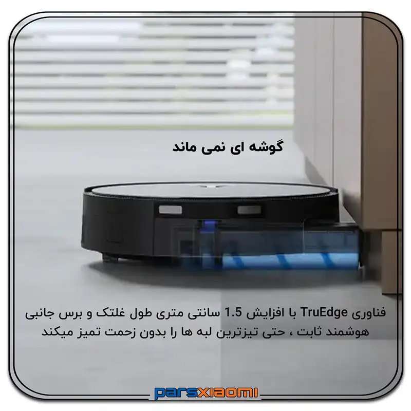 - TruEdge 3.0: تمیزکاری تا میلیمتر آخر: با غلتک تیکشی معلق و برسهای کناری که تا 1.5 سانتیمتر به لبهها میرسند، DEEBOT هیچ گوشهای را از قلم نمیاندازد. لبه دیوارها و کنجها را با دقتی بینظیر تمیز میکند.
