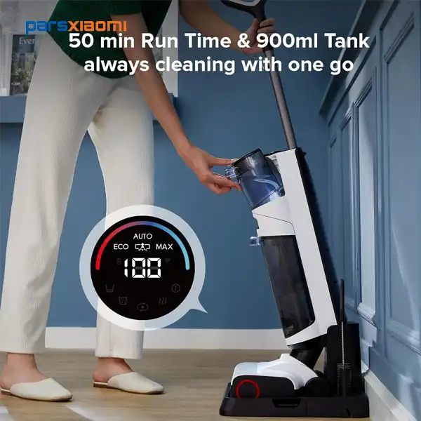 باتری قوی و قابل تعویض این دستگاه اجازه میدهد تا برای مدت طولانیتری بدون نیاز به شارژ مجدد کار کند. این ویژگی آن را برای خانههای بزرگ و فضاهای گسترده مناسب میکند.