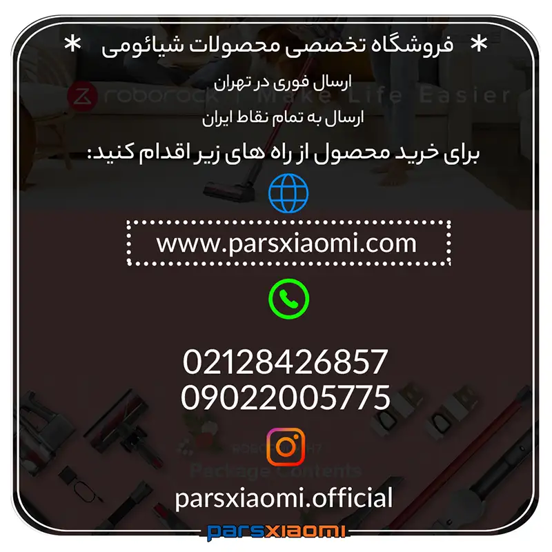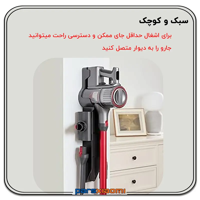 - نگهدارنده دیواری مغناطیسی: برای نگهداری و شارژ آسان جارو و لوازم جانبی.