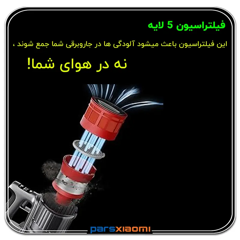 Roborock H7 با ارائه قدرت مکش 160AW (Air Watts)، یکی از قویترین جاروهای شارژی موجود در بازار محسوب میشود. این قدرت مکش به شما اطمینان میدهد که میتوانید به طور موثر گرد و غبار، موی حیوانات خانگی، ذرات درشت و سایر آلودگیها را از فرش، موکت، کف سخت و حتی شکافها و درزها جمعآوری کنید. سیستم فیلتراسیون چند لایه HEPA نیز ذرات ریز آلرژیزا و گرد و غبار را جذب کرده و هوای خروجی را تمیزتر میکند.