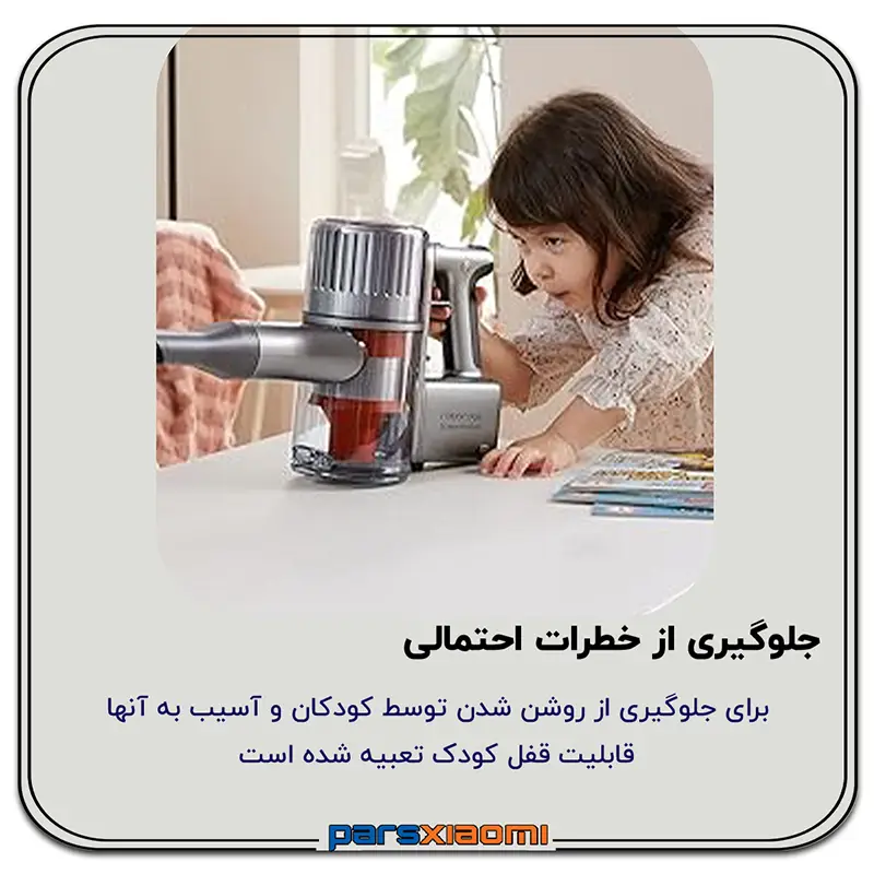 - قفل الکترونیکی: برای تمیزکاری مداوم بدون نیاز به نگه داشتن دکمه پاور.