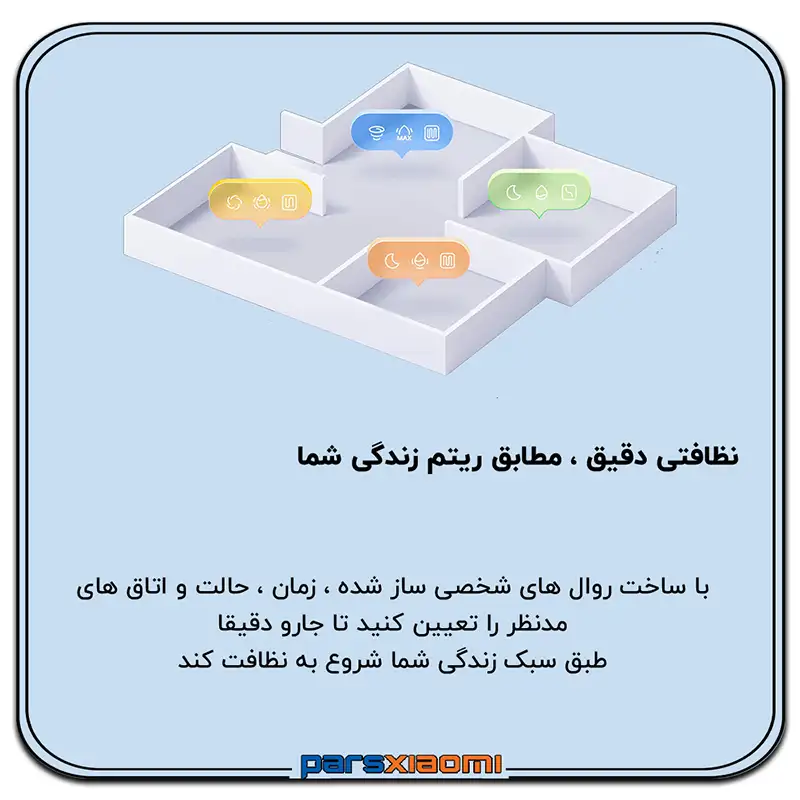 برنامههای سفارشی (Custom Routines): امکان تنظیم زمان، حالت و اتاقهای هدف برای نظافتهای شخصیسازی شده.