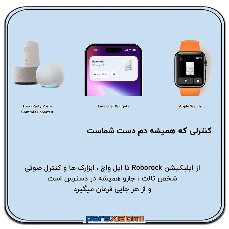 سازگاری گسترده: پشتیبانی از کنترل صوتی توسط دستیارهای شخص ثالث، ویجتهای لانچر و حتی امکان کنترل از طریق Apple Watch.