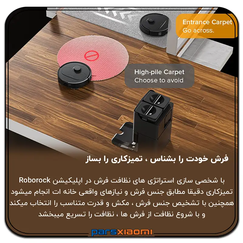 SmartPlan™: قابلیت هوش مصنوعی Roborock SmartPlan™ با یک ضربه، بهترین توالی و روش نظافت را بر اساس محیط تحلیل شده تعیین میکند.