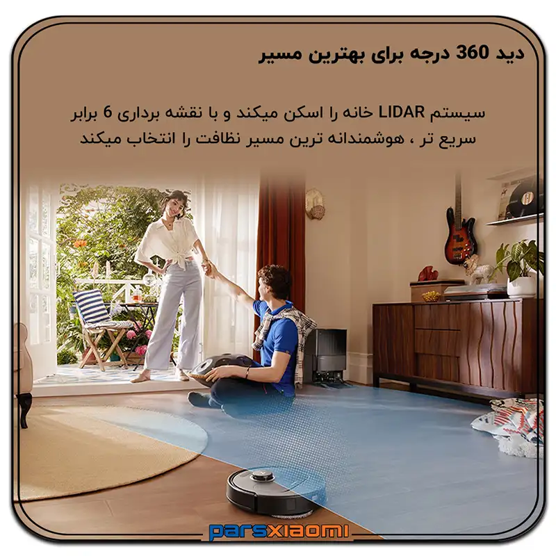 ناوبری LiDAR PreciSense: سیستم اسکن ۳۶۰ درجه برای ایجاد نقشههای دقیق، مسیریابی کارآمد و تطبیق خودکار با تفاوتهای کفپوش (فرش و کف سخت).