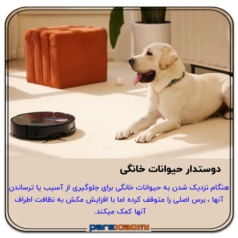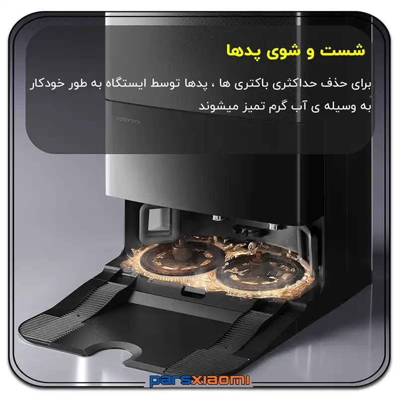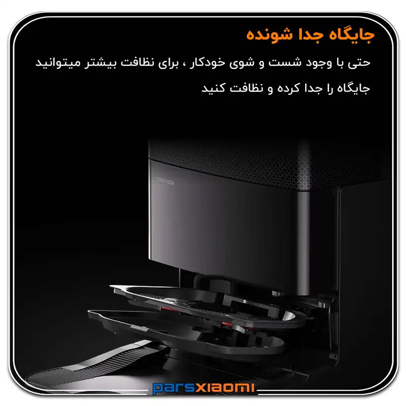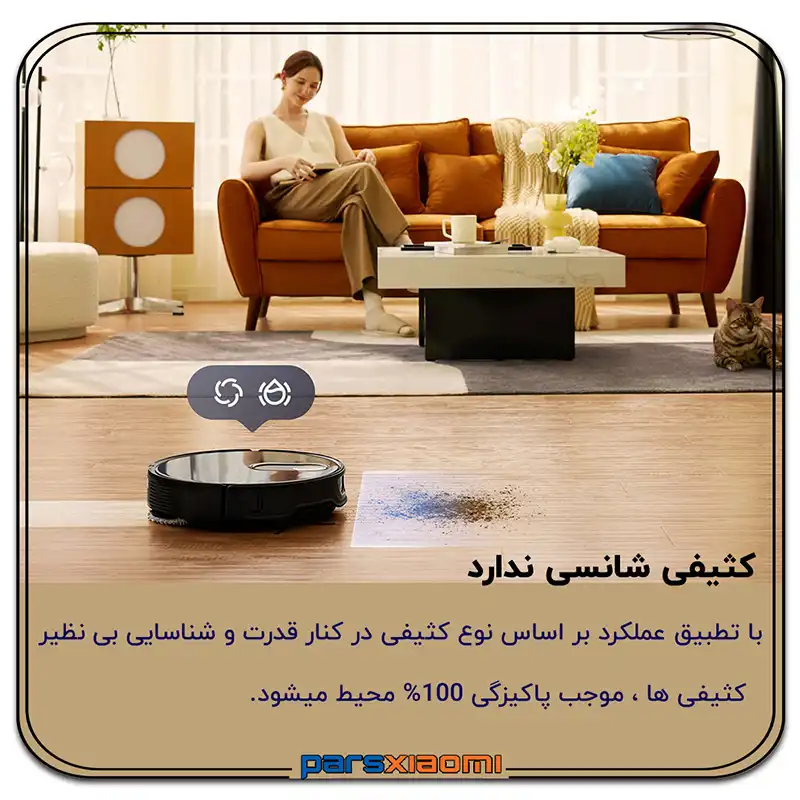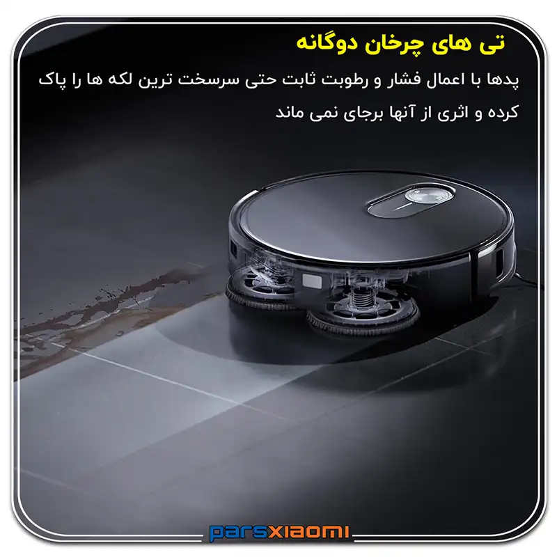 - بلند شدن خودکار پدهای تیکشی (Auto Mop Lifting): پدها تا 10 میلیمتر به صورت خودکار بلند میشوند تا هنگام جارو کشیدن فرشها و یا بازگشت به داک، از خیس شدن و باقی ماندن رد کثیف جلوگیری شود.