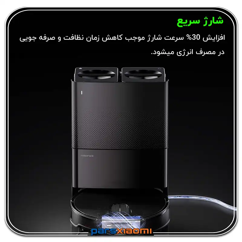 - تخلیه خودکار گرد و غبار: میتوانید تا 7 هفته بدون نیاز به خالی کردن مخزن گرد و غبار، از ربات استفاده کنید.
