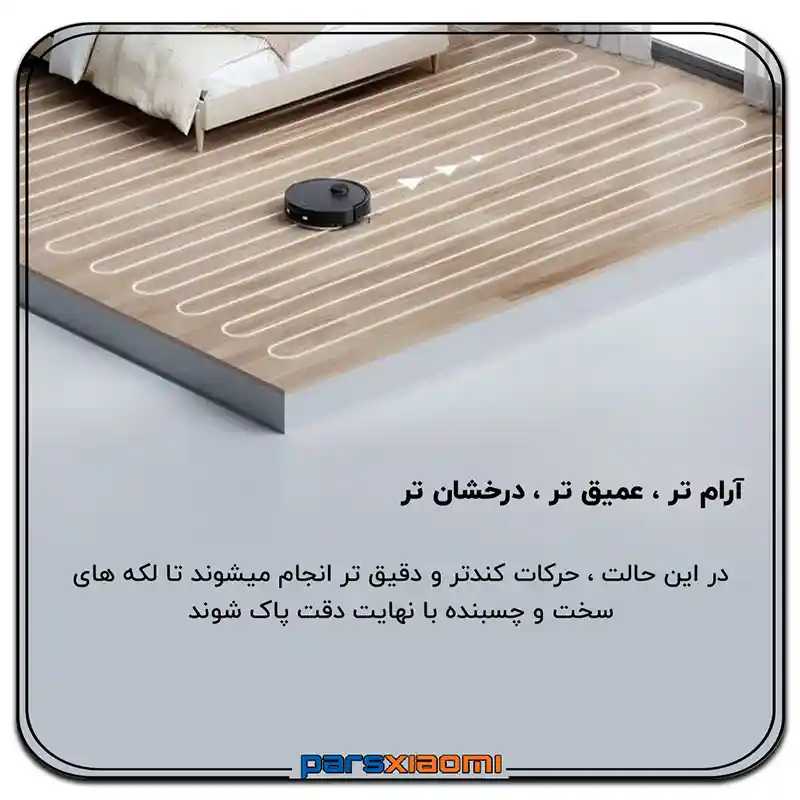 - کنترلهای اپلیکیشن پیشرفته: قابلیت تعریف دقیق مناطق ممنوعه (No-Go Zones)، تنظیم دیوارهای مجازی، نظافت موقت برای تمیز کردن مجدد یک نقطه خاص، و فعالسازی حالت High-Intensity Mopping (DEEP+) برای نظافت فوقالعاده عمیق.
