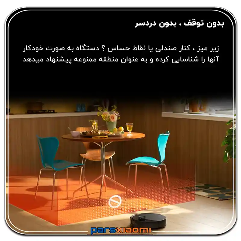 - اجتناب از موانع Reactive Tech: این فناوری مبتنی بر نور ساختار یافته، موانع کوچک، سیمها و اشیاء پراکنده را در زمان واقعی تشخیص داده و از آنها دوری میکند.