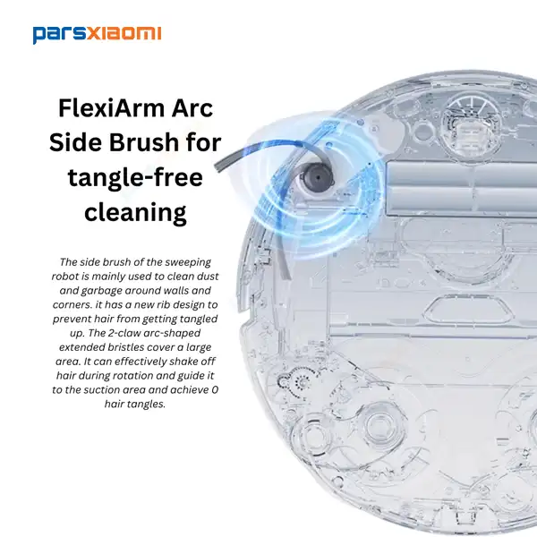 - عملکرد پرسرعت: برس کناری با چرخش سریع، گرد و غبار را به سمت دهانه مکش هدایت میکند تا از پخش مجدد آنها جلوگیری شود.