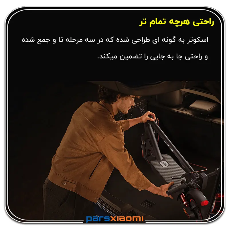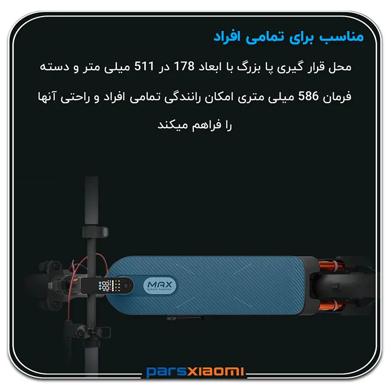 - شارژ سریع: باتری بزرگ این اسکوتر در حدود 3 ساعت به سرعت شارژ میشود.