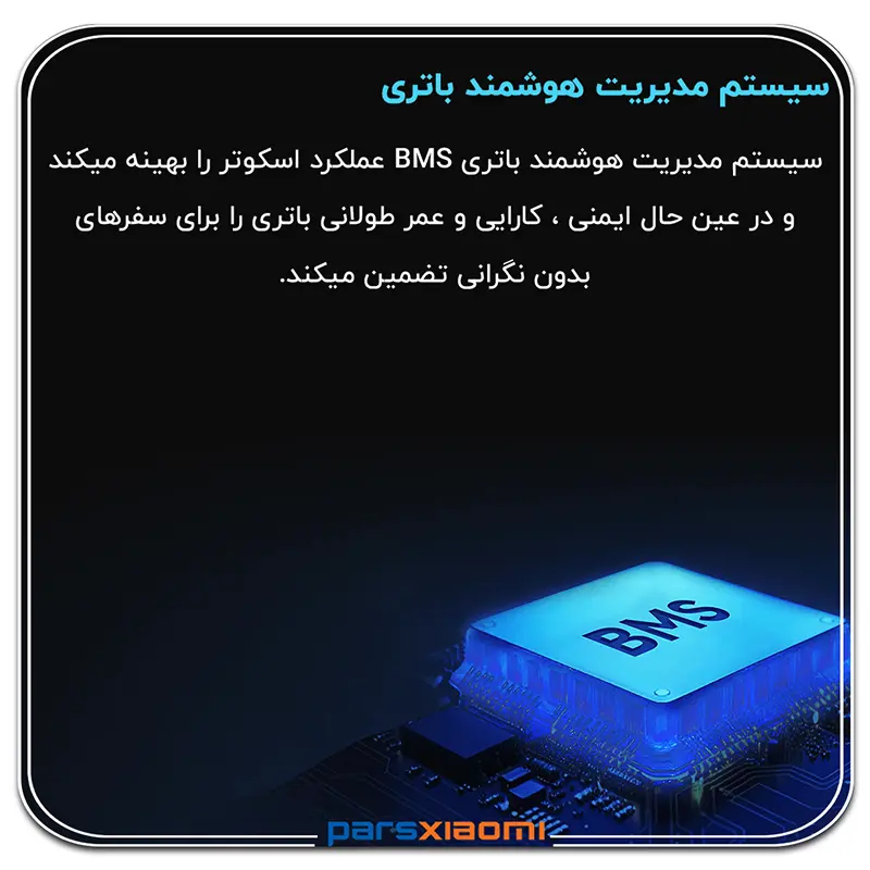- سیستم مدیریت هوشمند باتری (BMS): این سیستم هوشمند، سلامت و ایمنی باتری را تضمین میکند.