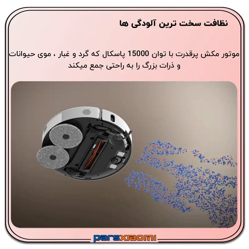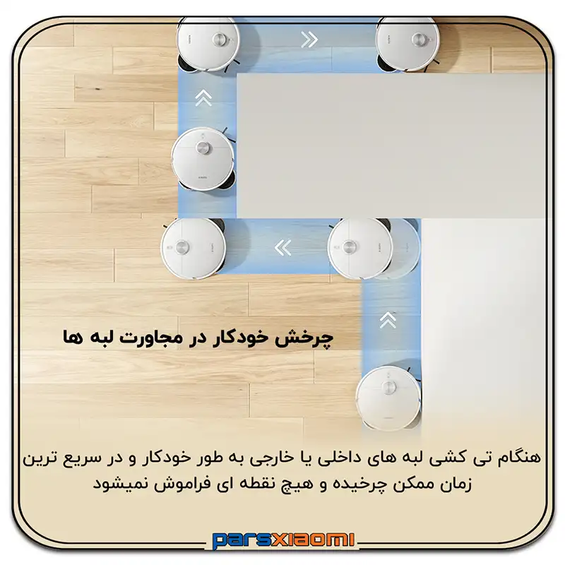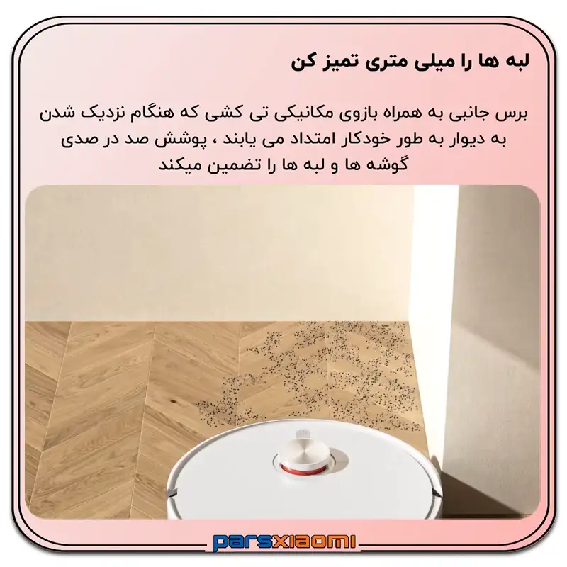 - پد تیکشی قابل گسترش: پد تیکشی نیز به سمت لبه دیوارها کشیده میشود تا لبهها را با دقت 1 میلیمتری تمیز کند.