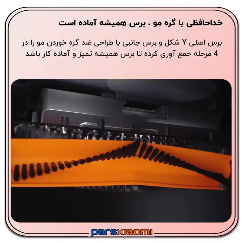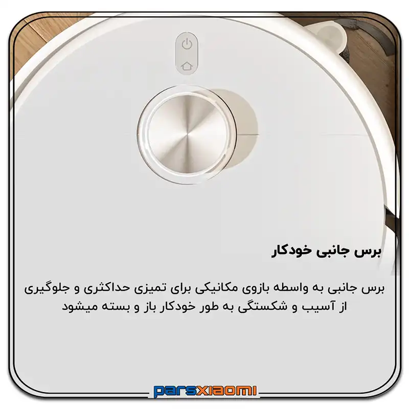 - برس کناری قابل گسترش: هنگام نزدیک شدن به گوشهها، برس کناری به صورت هوشمند تا 0 میلیمتر از لبهها فاصله گرفته و نظافتی کامل و بدون جا ماندن را تضمین میکند.